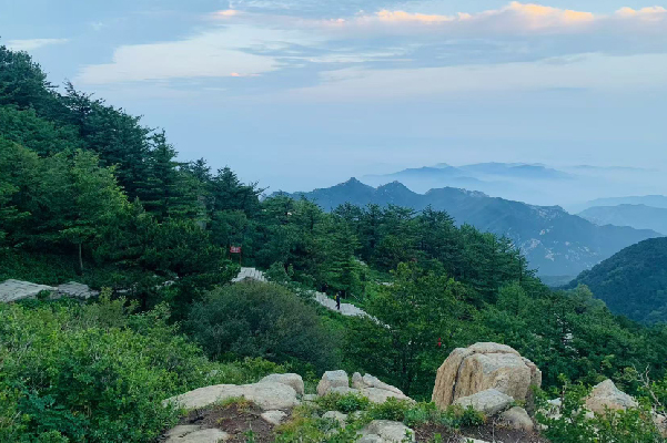 將近傍晚時分,天色似被一只無形的大手,緩緩地揉進了灰暗的色調。山間的風,也裹挾著絲絲涼意,穿梭于林葉之間,我們一行人,于這漸暗的天色中艱難匯合。每個人的臉上都帶著攀登后的疲憊,卻又難掩眼中那股興奮與期待交織的光芒。稍作整頓,便又毅然決然地繼續朝著那高聳入云的玉皇頂上行。